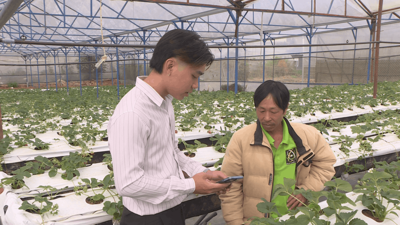 Anh Nguyễn Tuấn Dũng (áo trắng), phường Lâm Viên - Đà Lạt chia sẻ kinh nghiệm ứng dụng chuyển đổi số trong sản xuất dâu tây