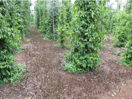 Vườn hồ tiêu sau khi phun thuốc trừ cỏ