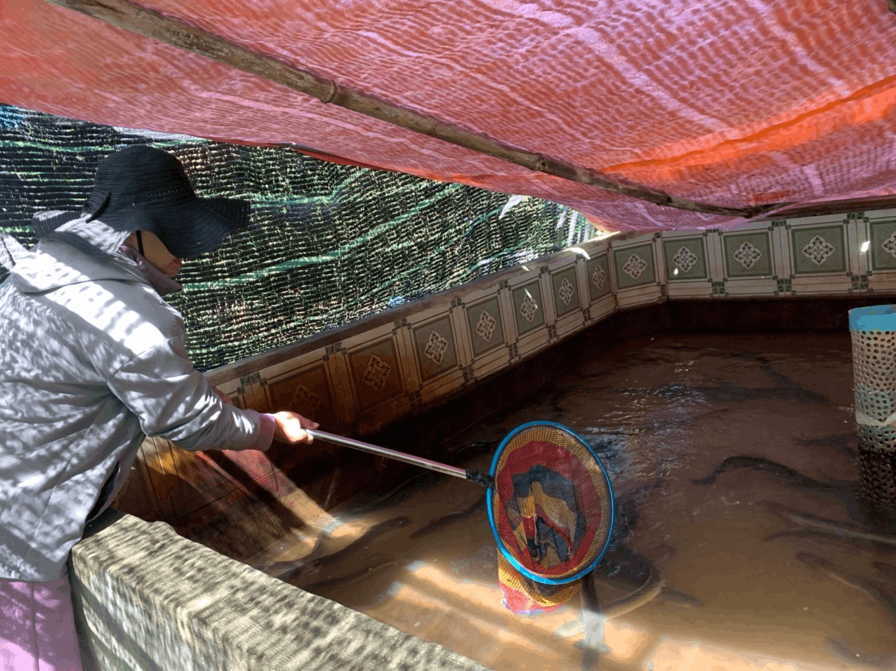 Chị Nguyễn Thị Choan chăm sóc đàn cá chình