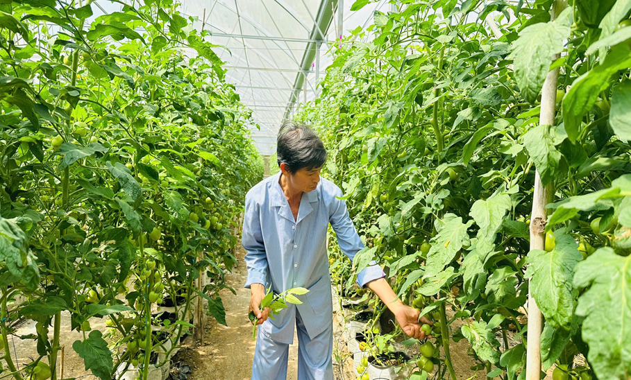 Với diện tích 2.000 m2 cà chua trồng trong nhà lưới, một năm anh trồng 2 vụ, thu hoạch trên 18 tấn quả/năm. Nhờ được trồng trong môi trường kiểm soát, cà chua cho trái to, đồng đều, màu sắc đẹp và vỏ căng bóng. Đặc biệt, việc hạn chế tối đa sử dụng thuốc bảo vệ thực vật giúp sản phẩm đảm bảo an toàn, đáp ứng yêu cầu ngày càng cao của thị trường. Nhờ chất lượng vượt trội, cà chua của anh luôn được thương lái thu mua trực tiếp tại vườn với giá trung bình khoảng 10.000 - 12.000 đồng/kg, có những thời điểm lên đến 20.000 - 22.000 đồng/kg tùy theo nhu cầu thị trường. Sau khi trừ chi phí sản xuất, mỗi năm gia đình anh thu lãi khoảng 250 triệu đồng.