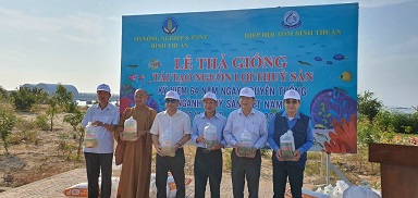 Lễ thả giống được tổ chức tại 02 điểm; đối tượng lựa chọn thả vào khu vực thủy vực nước ngọt là các loài cá nước ngọt phổ biến như cá Trắm, cá Trôi, cá Mè, cá Chép có tính thích nghi cao, sinh trưởng phát triển tốt trong hệ sinh thái hồ. Số lượng giống thả là 60.000 con (cá Trắm, cá Trôi, cá Mè, cá Chép mỗi loài 15.000 con), kích cỡ cá giống từ 5-7 cm, chất lượng cá giống đảm bảo không dị tật, không trầy xước, khỏe mạnh, màu sắc sáng bóng tự nhiên của loài; giống được lựa chọn từ cơ sở ương và sản xuất cá giống có uy tín, được kiểm dịch, đảm bảo chất lượng. Tại khu vực thả giống nước mặn ở Khu bảo tồn biển Hòn Cau, huyện Tuy Phong, cũng là địa điểm đã thực hiện thả giống tái tạo nguồn lợi trong nhiều năm, với hệ sinh thái đa dạng với các rạn san hô, thảm thực vật, các bãi rạn nên thuận lợi để các loài hải sản, nhất là các hải sản đáy như tôm sú, cá mú cư trú, sinh sản và sinh trưởng và phát tán ra môi trường xung quanh; tại đây, hơn 1 triệu con giống tôm sú và 5.000 con cá giống các loại như: cá mú; chim; chẽm… đã được thả về biển.