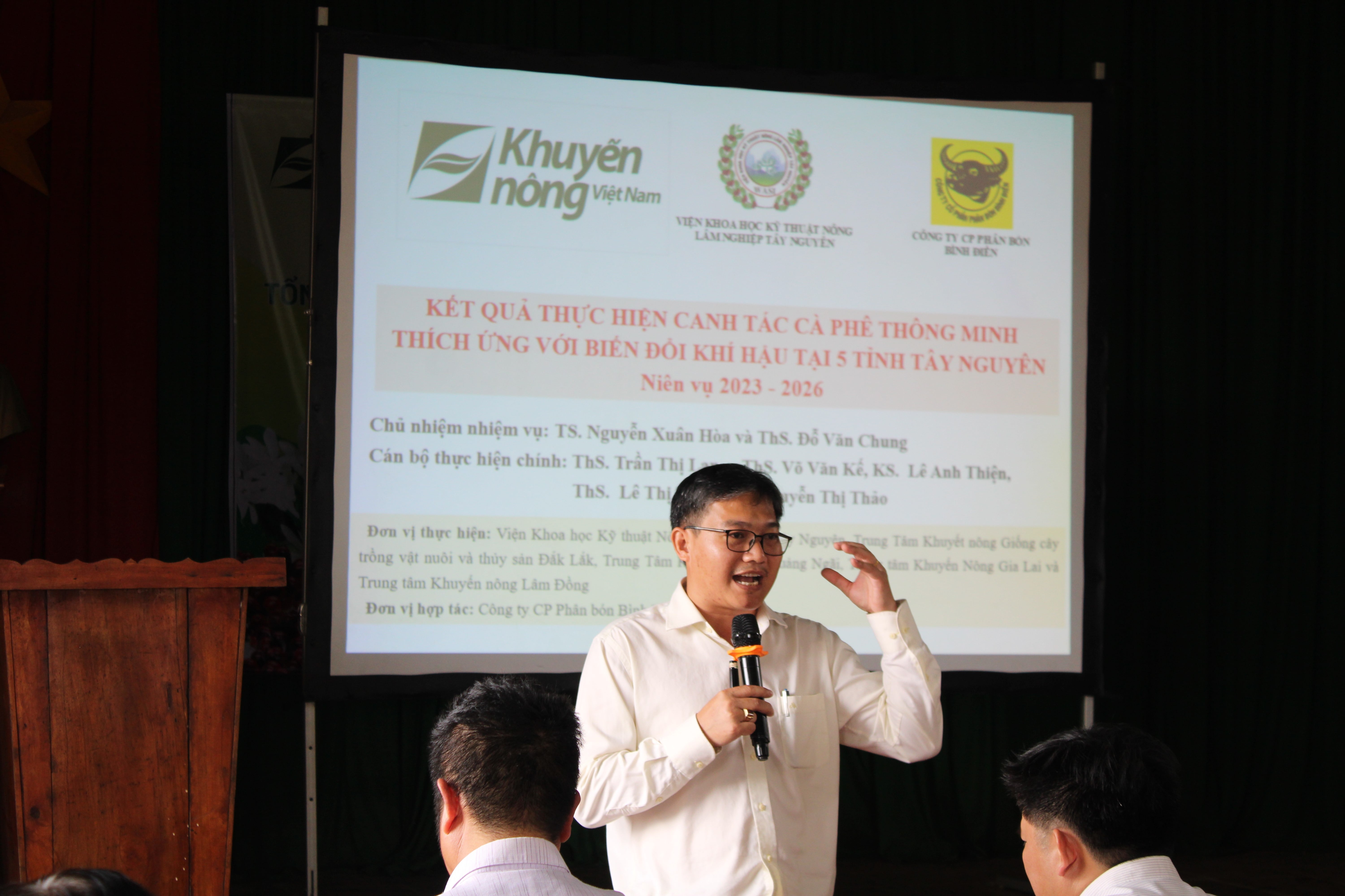 Tham dự Chương trình Hội thảo có ông Nguyễn Văn Chương - Giám đốc Trung tâm Khuyến nông tỉnh Lâm Đồng; TS. Nguyễn Xuân Hòa - Trưởng bộ môn Hệ thống nông nghiệp, Viện Khoa học KTNLN Tây Nguyên; TS. Phạm Công Trí - Hội đồng khoa học Công ty CP Phân bón Bình Điền; ông Trần Thái Bình - Phó tổng giám đốc Công ty CP Phân bón Bình Điền Lâm Đồng; các đại biểu đại diện cho các đơn vị tại địa phương và bà con nông dân sản xuất cà phê trong khu vực.