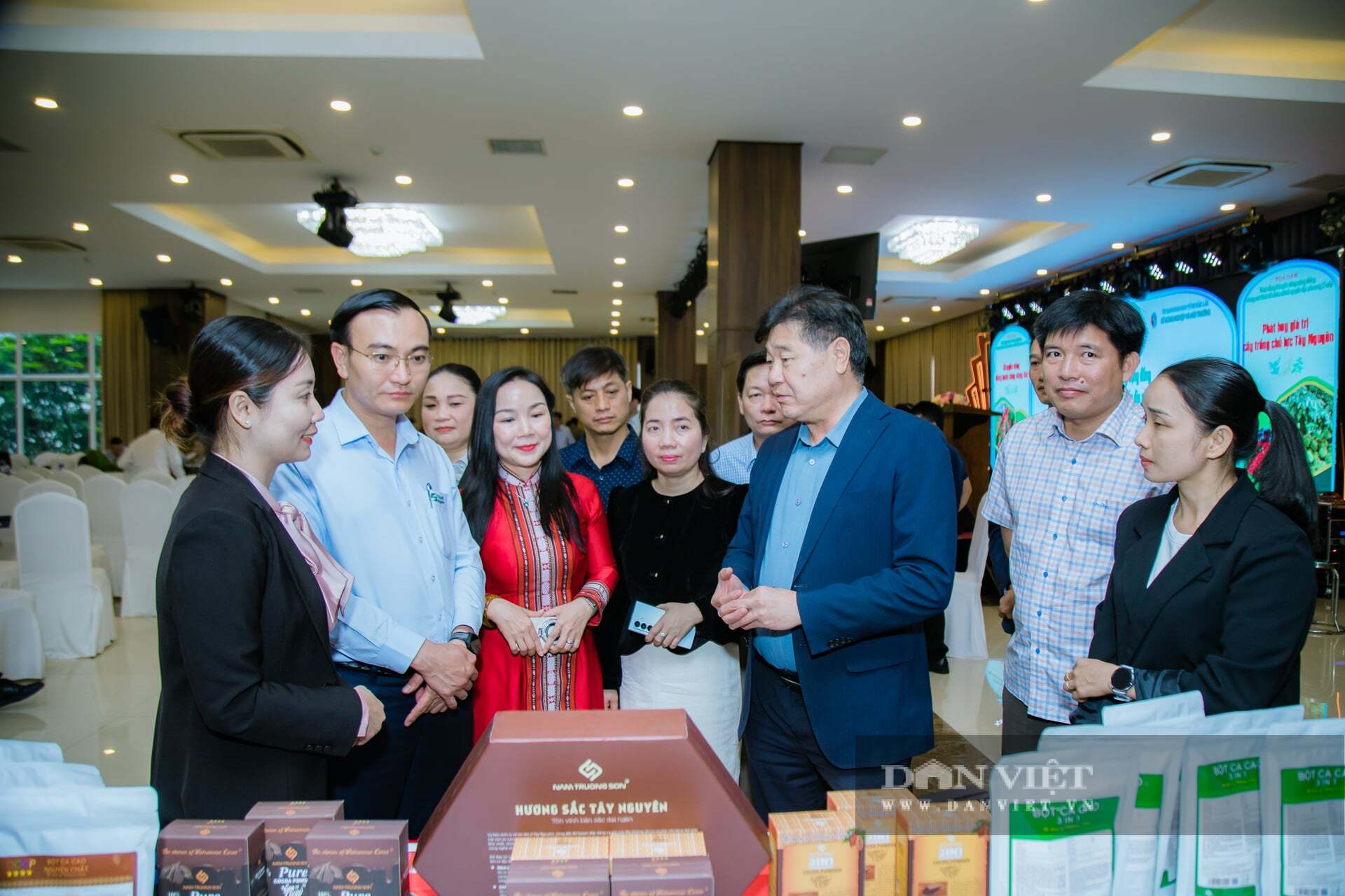 Lãnh đạo Trung tâm Khuyến nông Quốc gia và lãnh đạo tỉnh Đắk Lắk tham quan các sản phẩm chế biến từ ca cao.