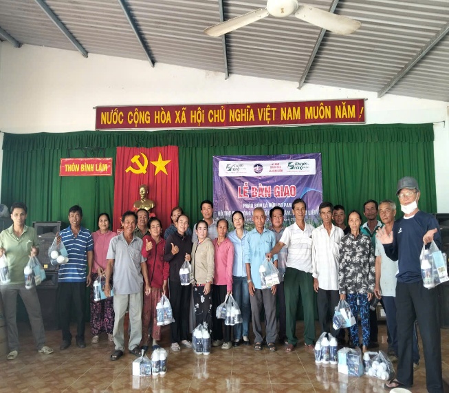 Bàn giao phân bón hữu cơ hỗ trợ nông dân xã Hàm Liêm phục hồi sản xuất