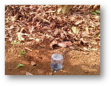 Chai nhựa là công cụ hết sức đơn giản nhưng giúp nông dân tiết kiệm lượng nước tưới. Bằng cách đặt 05 chai nhựa úp xuống đất ở 05 điểm của vườn cà phê (đặt ở mép tán) vào buổi chiều và quan sát mức độ nước ngưng đọng lại trong thành chai vào buổi sáng sớm. Khi thấy những giọt nước nhỏ li ti đọng lại trong thành chai, có nghĩa là độ ẩm đất còn 26-28%. Như vậy người nông dân biết rằng đã đến lần tưới đầu tiên trong mùa khô để đạt 90% hoa nở lần đầu tiên.