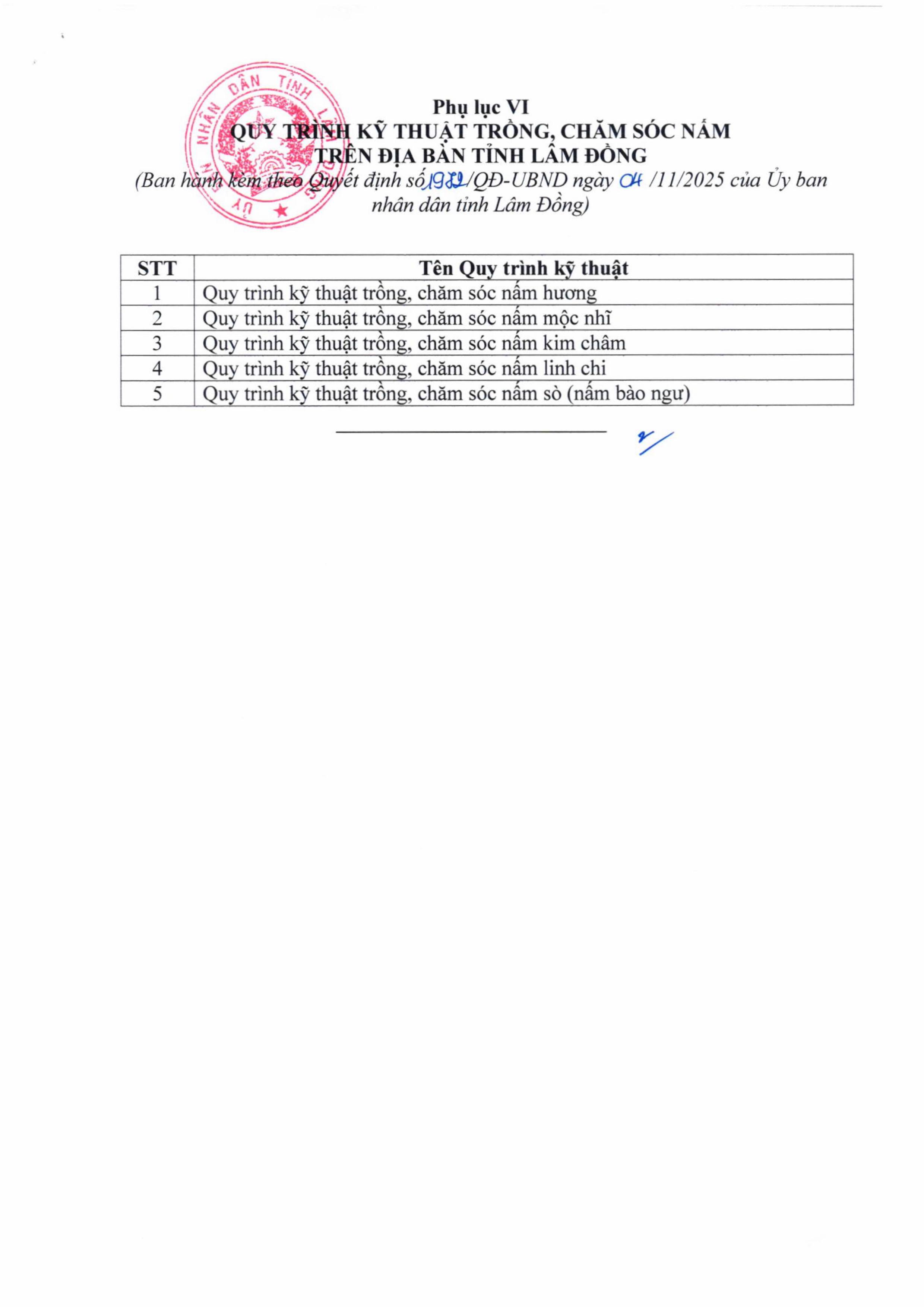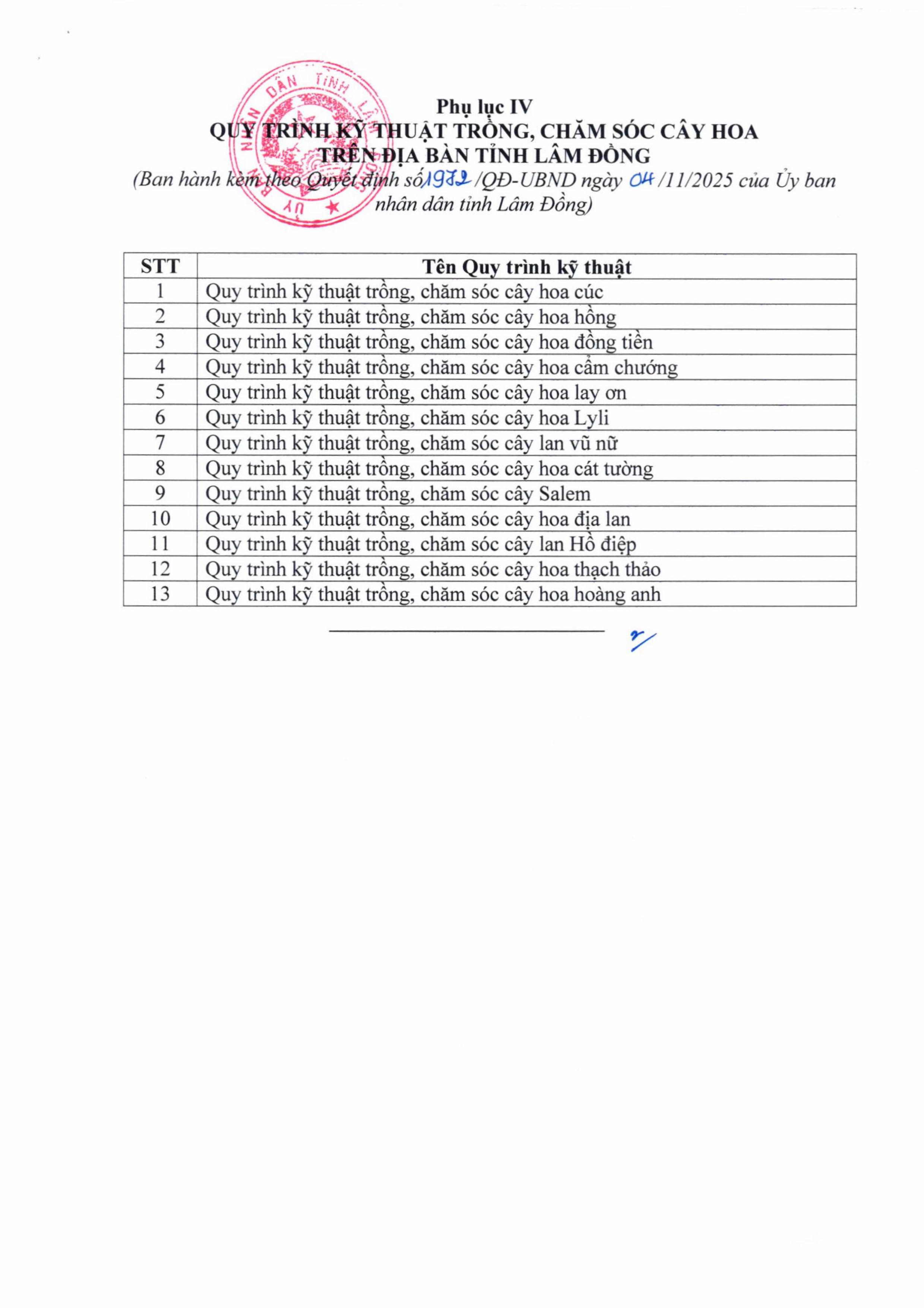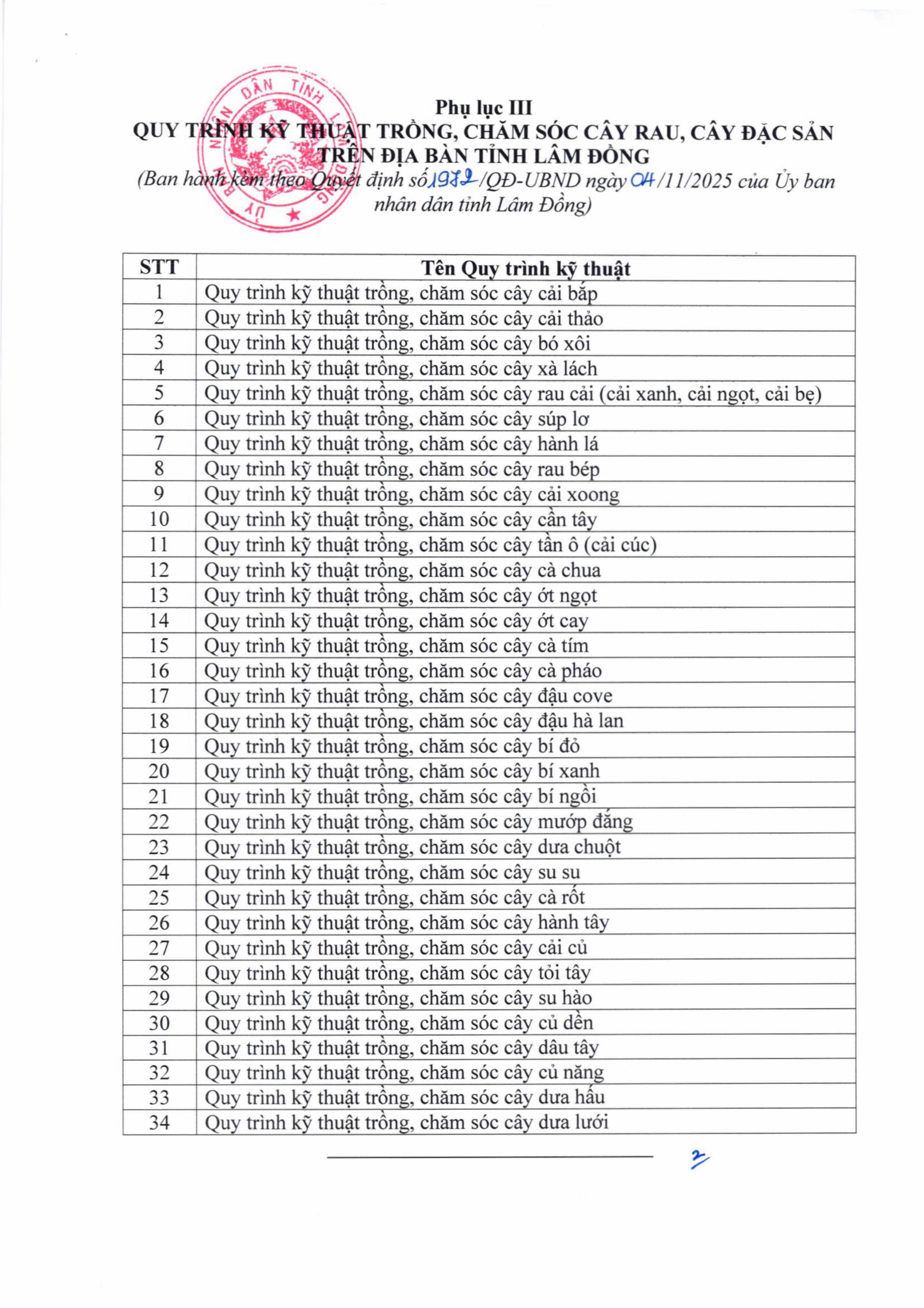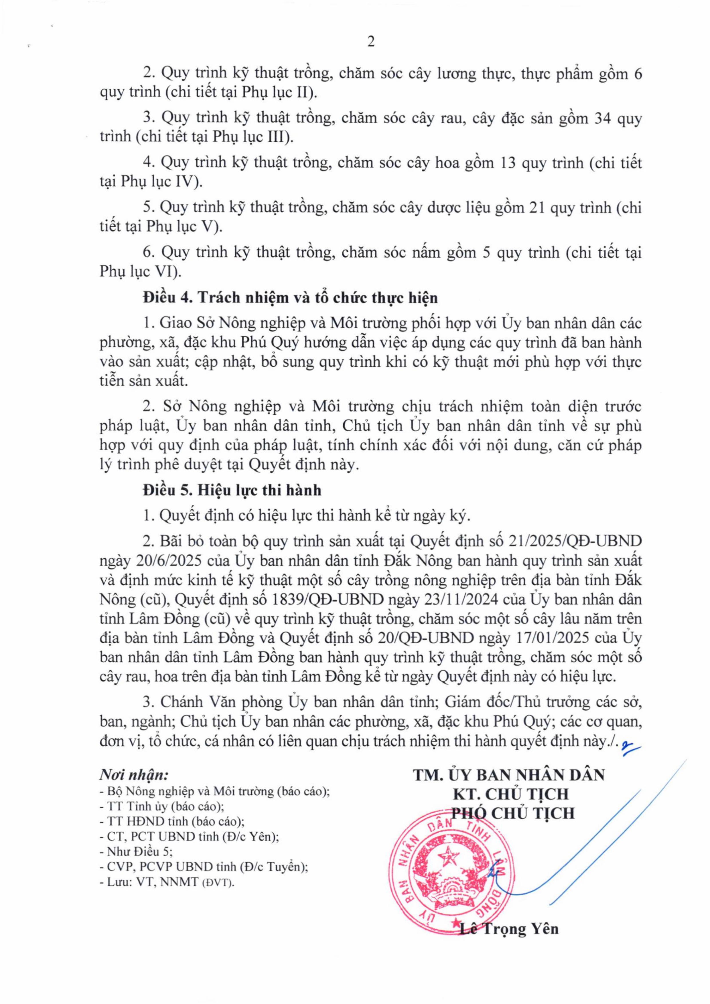 Ngày 04/11/2025, UBND tỉnh Lâm Đồng đã ban hành Quyết định số 1972/QĐ-UBND ban hành 120 quy trình kỹ thuật trồng, chăm sóc cây trồng địa bàn tỉnh Lâm Đồng.