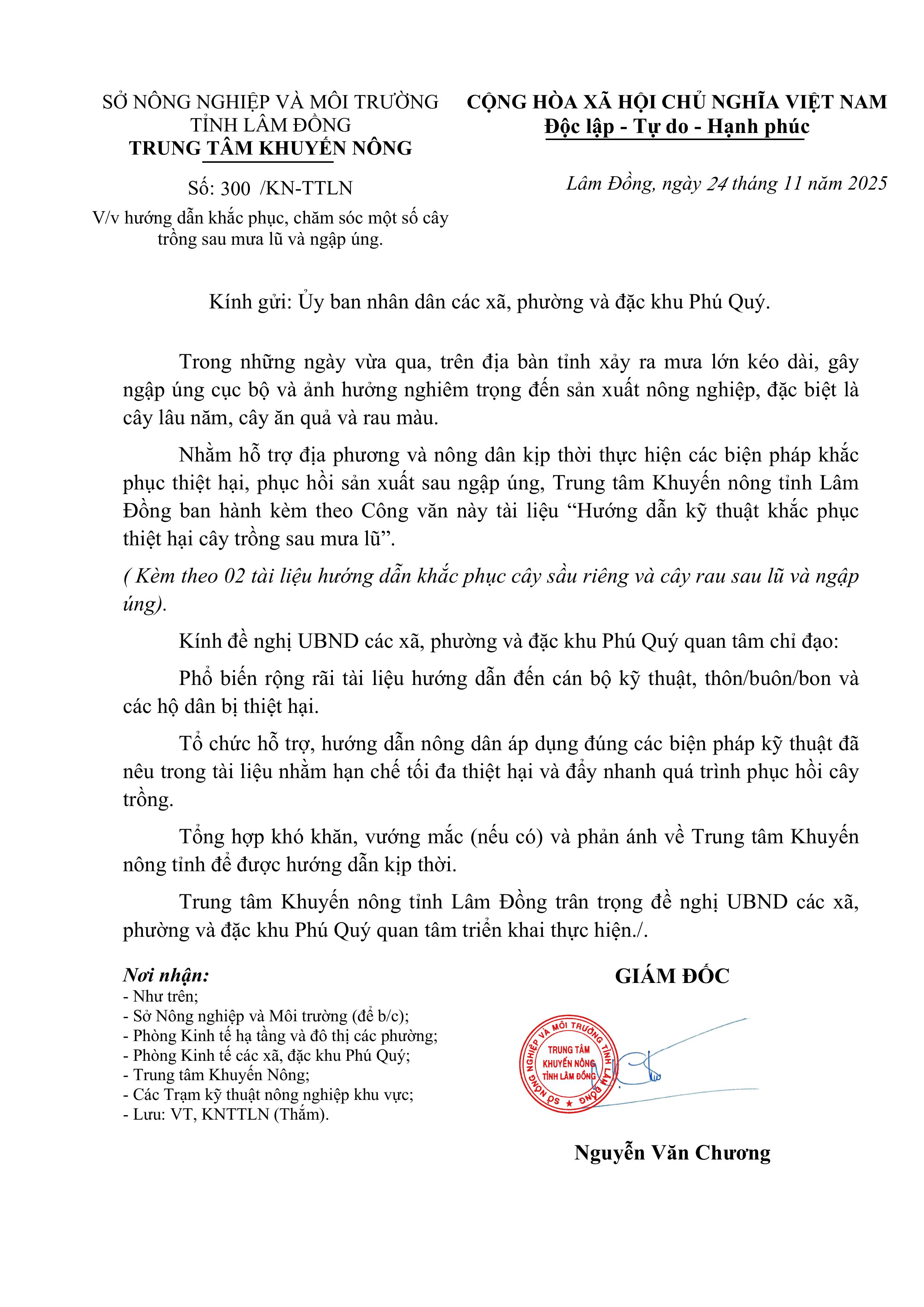 (Kèm theo 02 tài liệu hướng dẫn khắc phục cây sầu riêng và cây rau sau lũ và ngập úng).