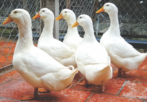 b. Vịt Siêu thịt VIGOVA: là giống vịt chuyên thịt, lông có màu trắng, tỷ lệ nuôi sống 97%. Vịt thương phẩm nuôi nhốt 7 tuần tuổi trọng lượng có thể đạt 3,55kg, tiêu tốn thức ăn 2,4kg/1kg tăng trọng, tỷ lệ thịt xẻ 73%.