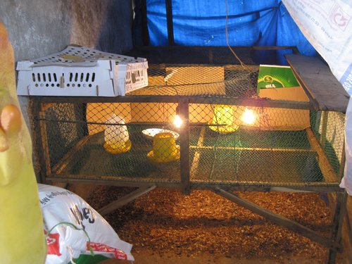 - Chuẩn bị đèn sưởi, tốt nhất là dùng bóng đèn điện 75W, treo cách đáy chuồng khoảng 20 – 30 cm, hoặc dùng than củi, than đá (chú ý cháy và khí độc).