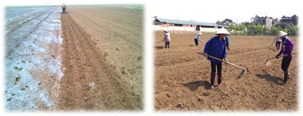 - Làm (cày) vỡ đất, phơi nắng từ 7-14 ngày và sau đó bừa cho đất tơi 1-2 lần.
